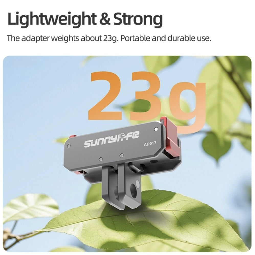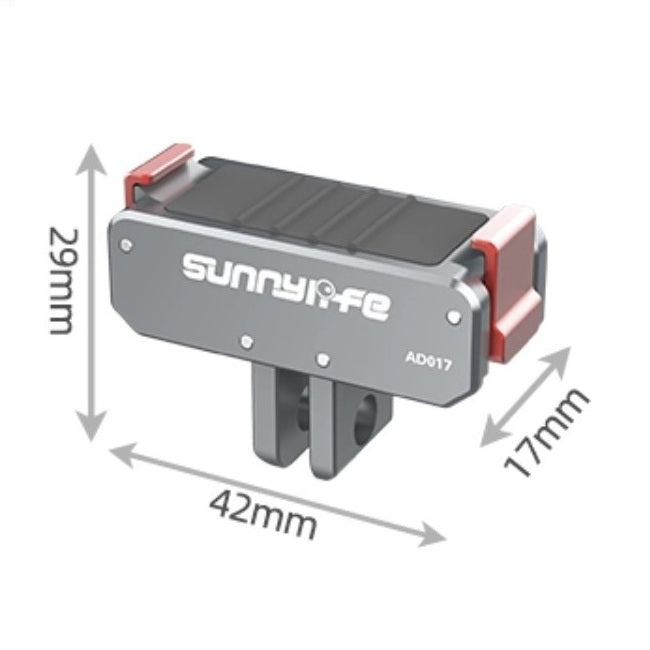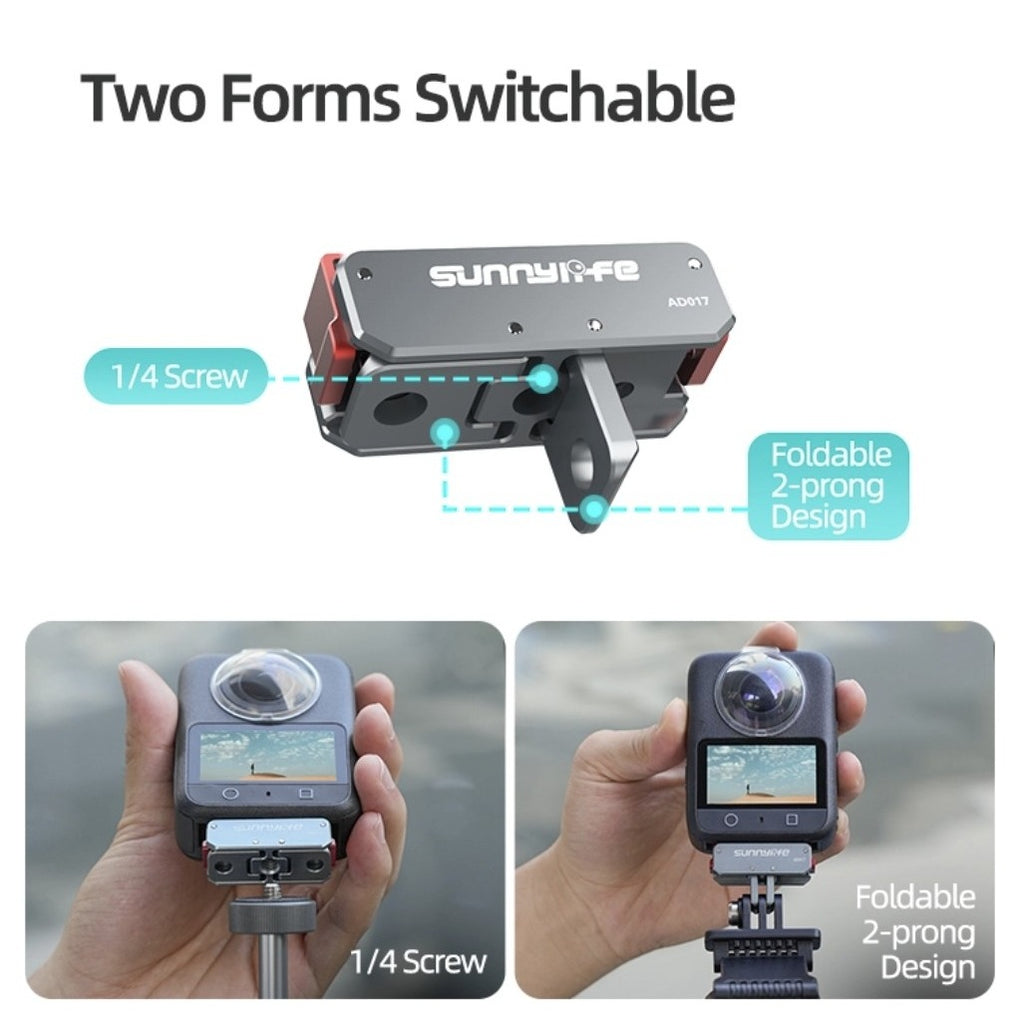 Product Description The Magnetic Fork Adapter for Osmo 360 / Osmo Action 5 Pro 4 3 broadens the range of mounting possibilities. It facilitates the attachment of the camera to action camera accessories and mounts via the thumb screw connection. Additionally, the adapter features a 1/4" screw hole on the base, enabling compatibility with various universal accessories possessing a 1/4" screw thread.