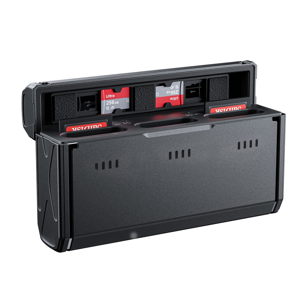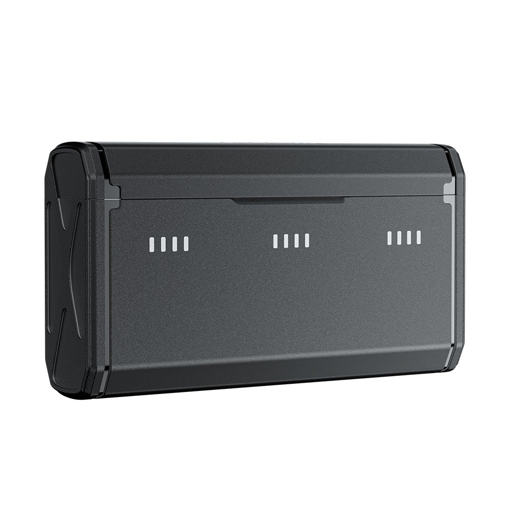 The Triple Charger Battery Kit for Sony RX100 / CX240 / WX350 / HX400 comes with a USB cable, triple channel battery charger and 2 replacement 1090mAh batteries. This charger enables the simultaneous charging of three batteries and will automatically detect the number of batteries to adjusts the charge current. Not only does it charge efficiently, but it also doubles as a storage container, accommodating up to four memory cards alongside batteries. Engineered with Type-C fast charging technology, it ensures rapid charging for your Sony batteries.