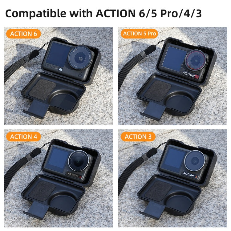 The Protective Carry Case with Lanyard for Osmo Action 6 / 5 / 4 / 3 is a compact and lightweight solution designed to protect your camera while on the move. Made from plastic and EVA, it offers good wear resistance and helps guard against scratches and minor impacts. The included security lanyard allows the case to be safely carried by hand, helping prevent accidental drops.