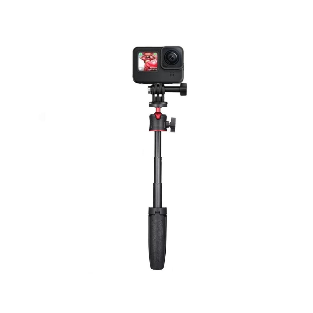The Hand Grip Tripod for GoPro is a compact and multifunctional accessory that makes the perfect travel companion for capturing high quality photos and videos on the move. It features a non-slip grip handle, an anti-skid rubber base for stability, and a 360° adjustable ball head for perfect angle control. With a pull out centre column extending up to 27cm, it easily converts from a handheld grip to a stable tripod for versatile shooting.