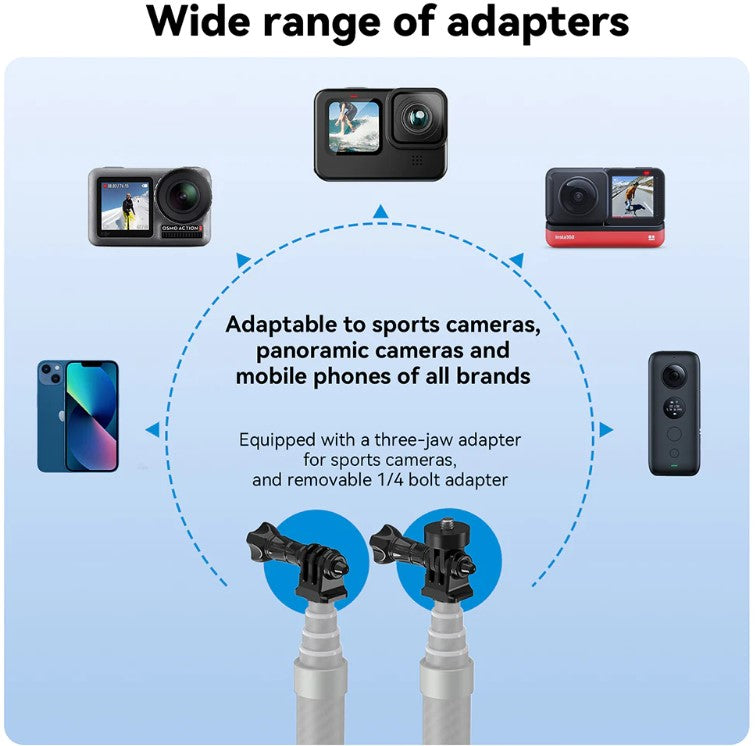 - Compatible with many other action camera brands and models including CamGo, Insta360, Osmo Action 5 4 3 2 1, Osmo 360, Osmo Nano, Osmo Pocket 3 2 1, SJCAM, Zero-X, & more