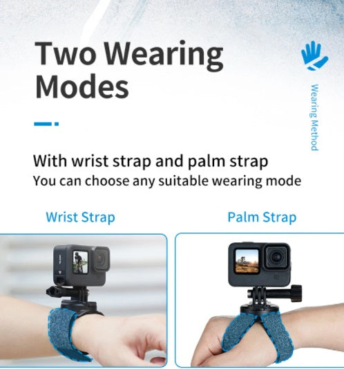 The 360 Rotating Wrist Hand Strap gives the ability to capture point of view (POV) footage on the go on whilst attaching the mount to either the wrist, hand or ankle. The strap has two wearing modes with both an interchangeable wrist strap and palm strap. The straps attach to a 360 degree mount base which has an easy lock in and out mechanism for quick angle adjustments. The wrist hand strap is perfect for using while you're: