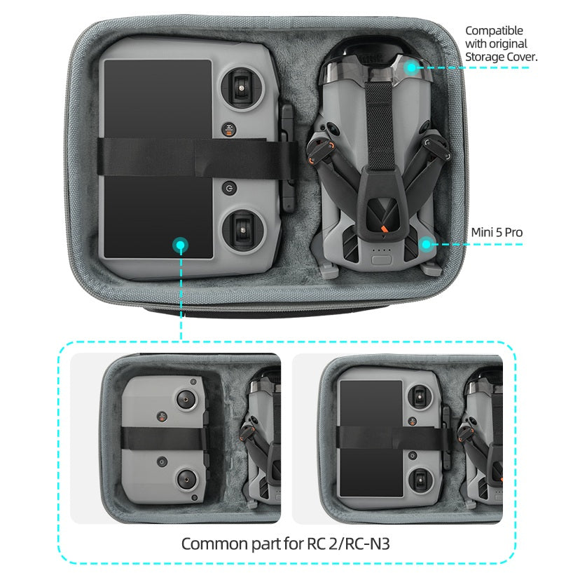 The Combo Carry Case for Mini 5 Pro has been specifically designed to make travel with your drone more convenient. The case allows for the drone body and RC 2 or RC-N3 remote controller to be easily stored and secured for traveling. Having the carry case for Mavic Mini makes using your drone easier on the go!