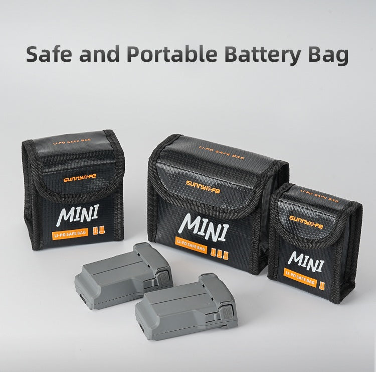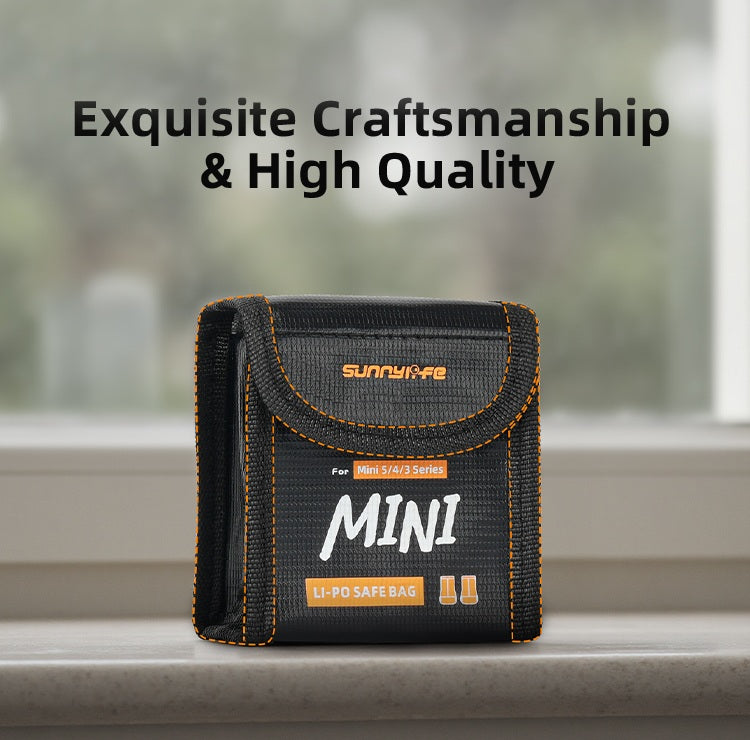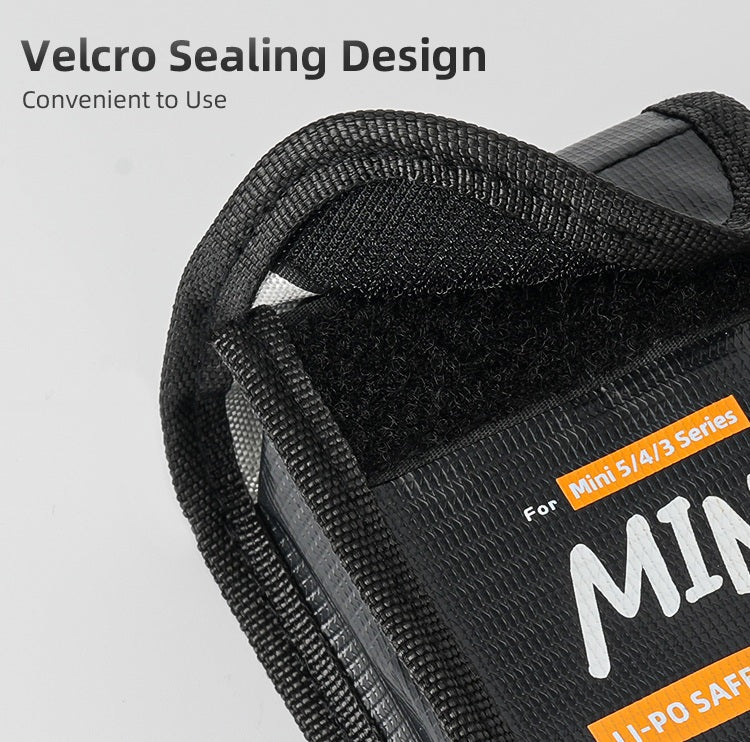 This Lipo Safe Battery Bag for Mini 5 Pro securely holds up to three Mini 5 Pro batteries, offering organized storage and reliable protection while traveling. Made from heat-resistant, explosion proof materials with a durable Velcro seal, it ensures your batteries remain safe, accessible, and protected under any conditions.