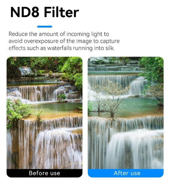 - The Neutral Density (ND) filter for Pocket 2 reduces the amount of light coming into the camera sensor without affecting the colour of the video or photo.
