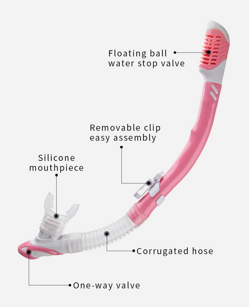 - 【Anti-Choking】The snorkel has been designed with an independent air purge valve as well as two drain valves to prevent the user from choking on water. The snorkel will provide an easy breathing snorkeling experience.