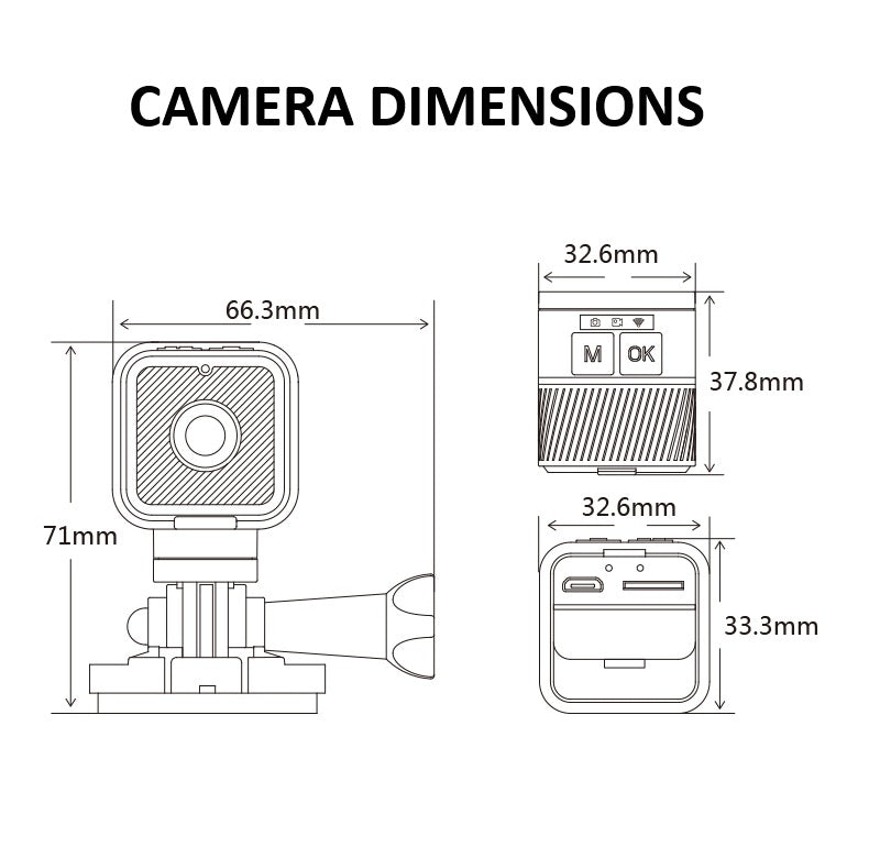 - Camera Dimensions: 32.6mm x 33.3mm x 37.8mm