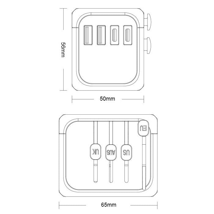 • Plug Types Supported: UK / EU / US / AU / AS (Integrated Slide Switches)